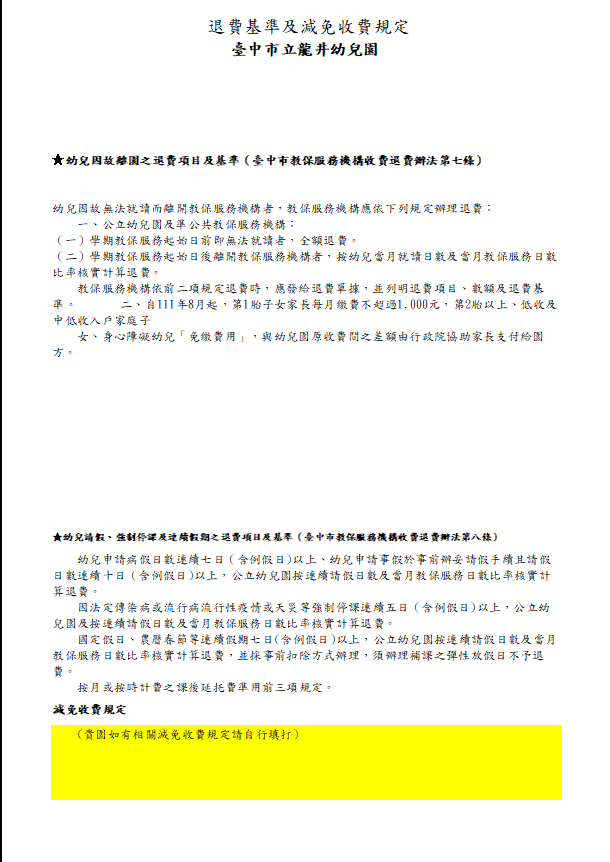 114學年度第2學期退費基準及減免收費規定